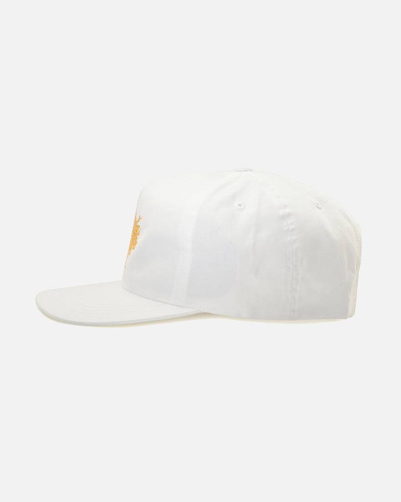The classic Money tree snapback in white: featuring our original Money tree logo embroidered in gold, a timeless look for your collection.